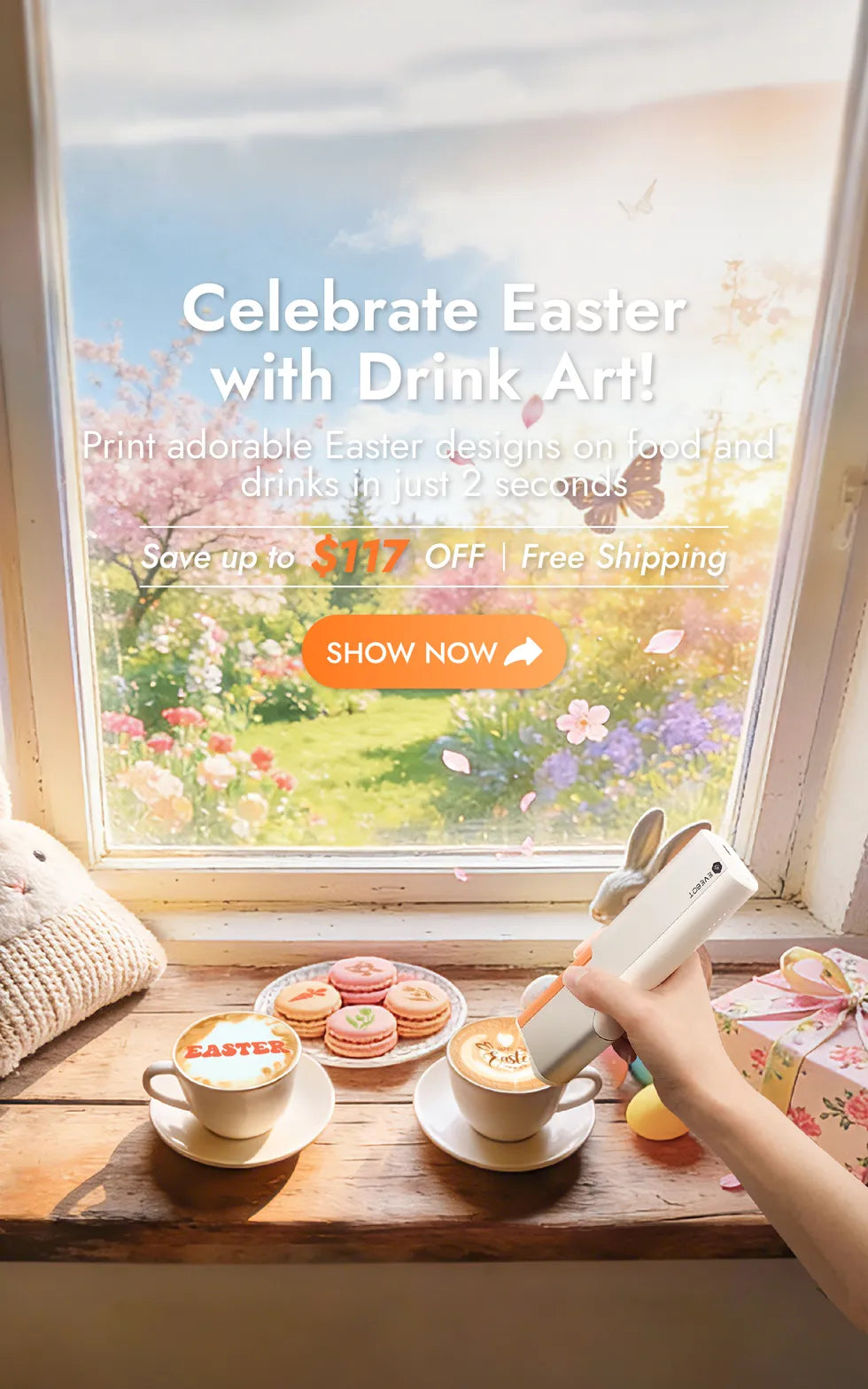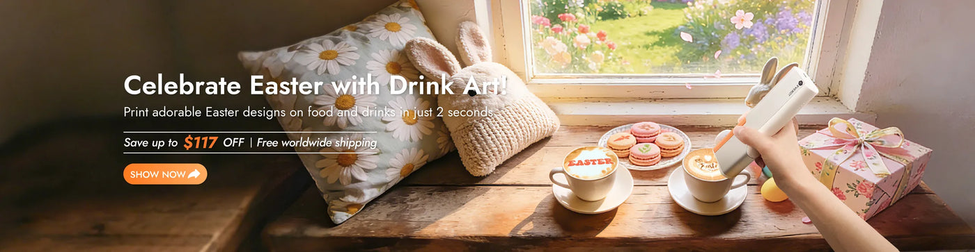 Print selfies, festive graphics and creative designs on your favorite drinks and foods.