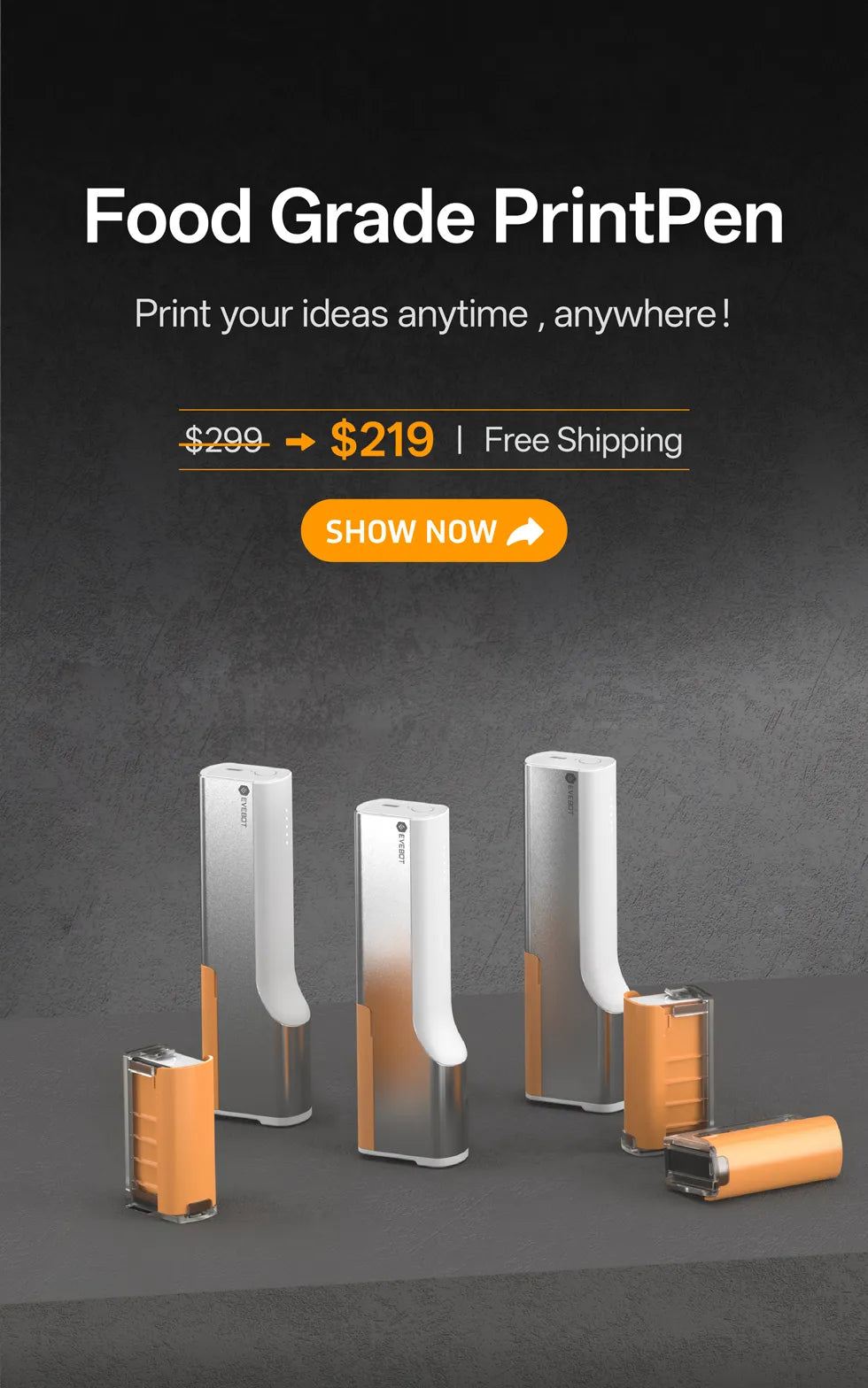 Food-grade PrintPen helps you easily print logos and images onto a variety of food products. Whether you're using it in a store, restaurant, or event, it's easy to get things done.